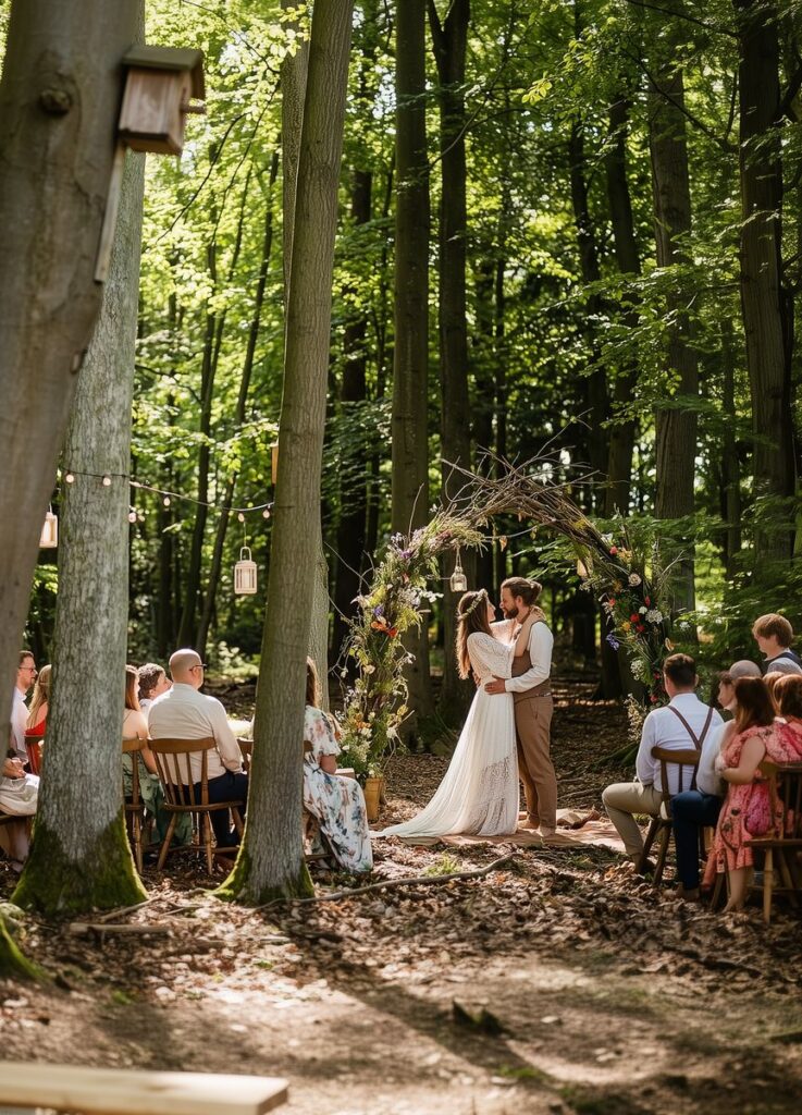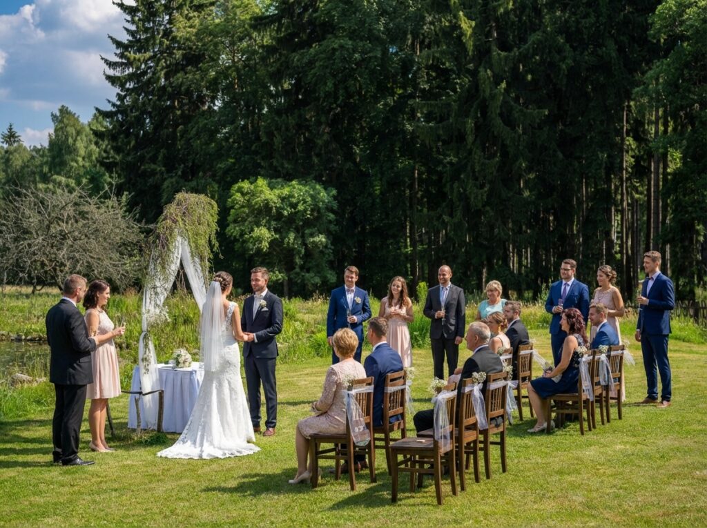Ve stínu stromů na vás čeká dokonalé místo provoněné dřevem a jehličím. Hra světel mezi kmeny a ticho okolní přírody vytvoří pro váš slib intimní kulisu s neopakovatelným kouzlem.
