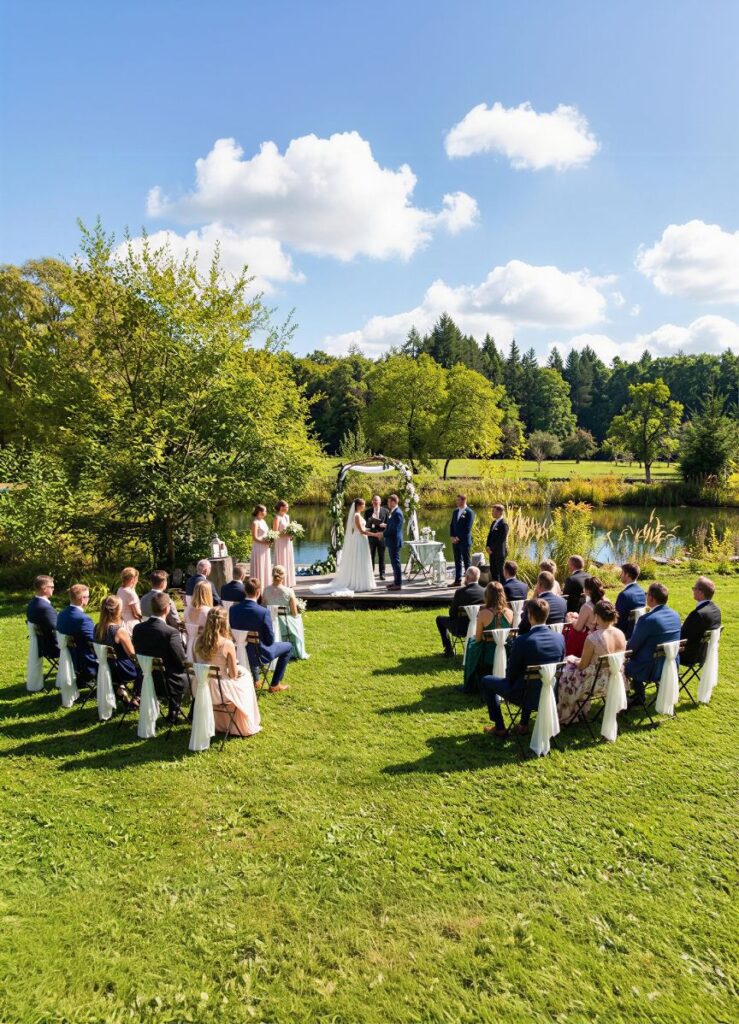 S romantickým výhledem do přírody nabízí jezírko se třpytící se hladinou klidné místo pro vaše sliby. Je to ideální volba pro ty, kteří chtějí vzdušný obřad v krajině, kde hraje hlavní roli vodní hladina a okolní zeleň.